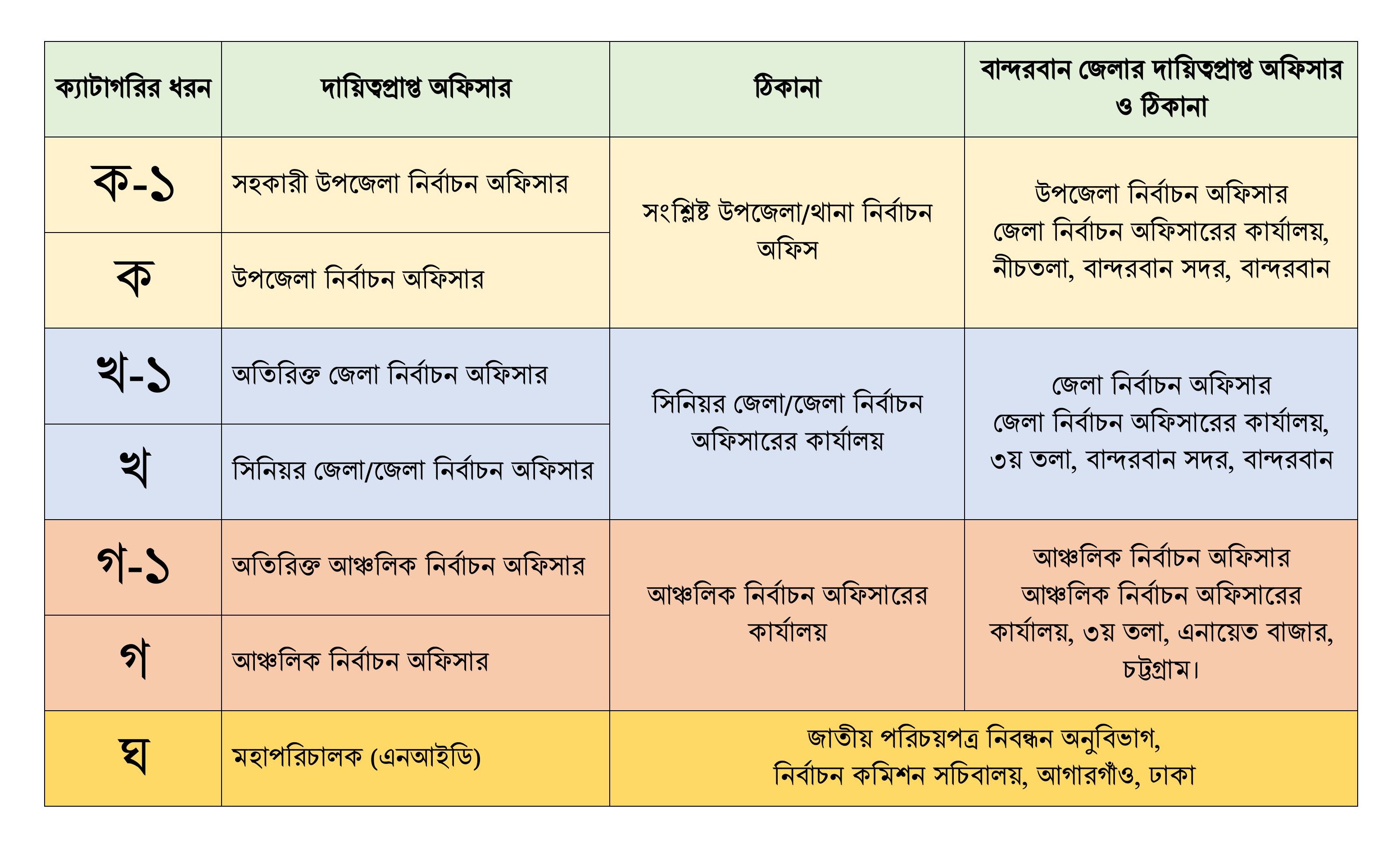 | ০৫ | আবেদনের ৩-৫ দিন পর সংশ্লিষ্ট উপজেলা/থানা নির্বাচন অফিসে গিয়ে ক্যাটাগরি জানুন। |